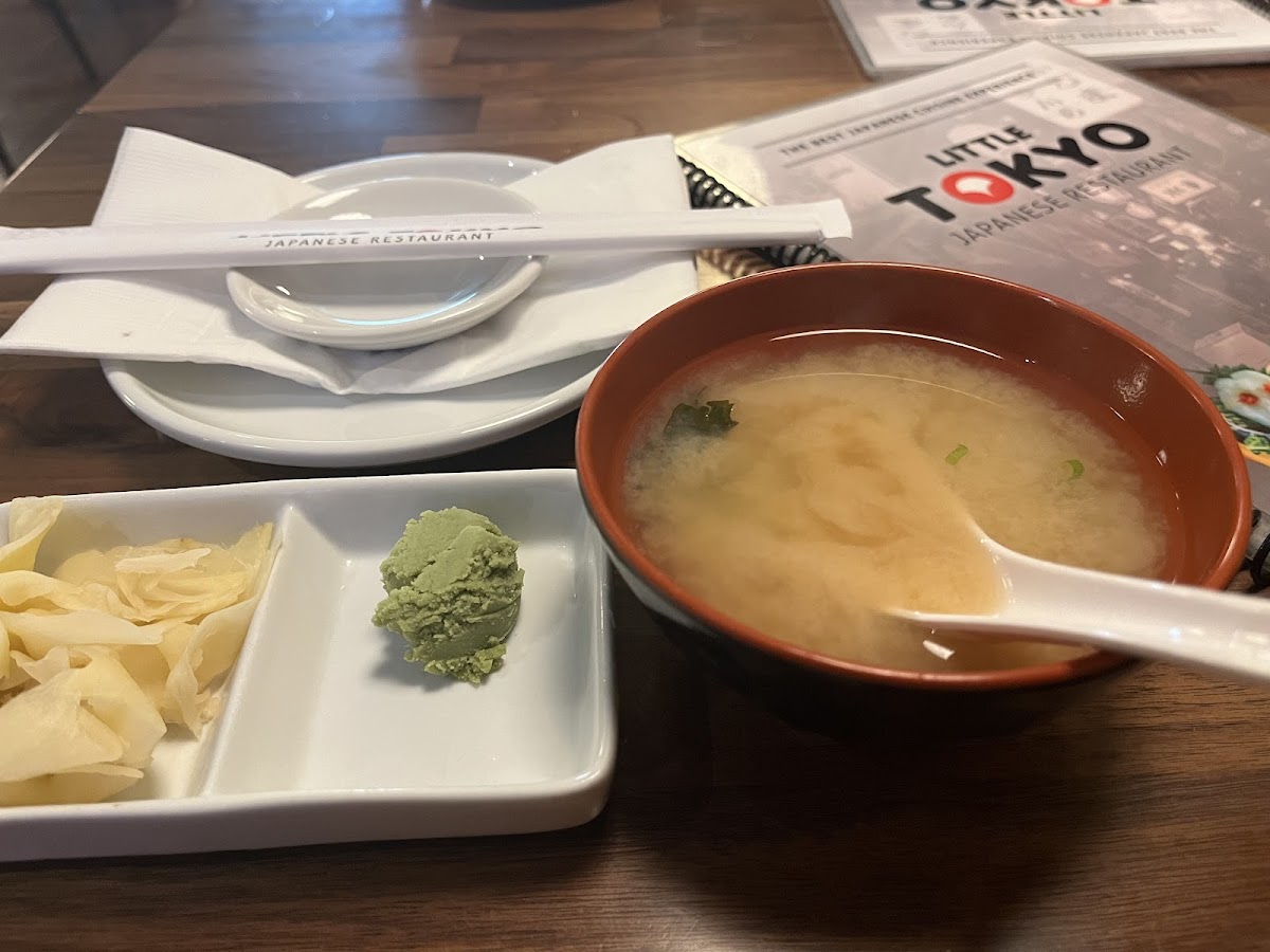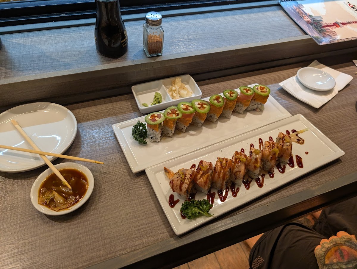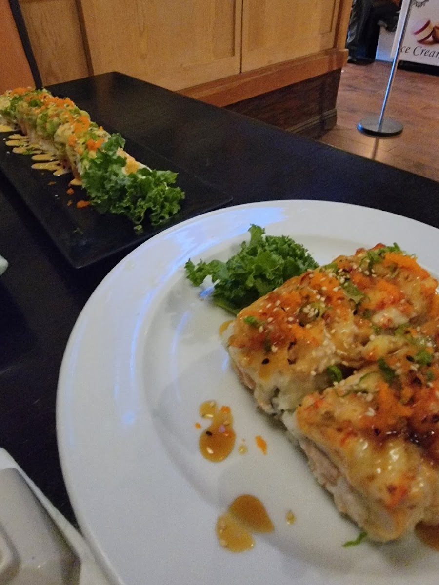 My husband ordered a ZenRoll and a rainbow roll. I ordered a bento box with teriyaki chicken and a California roll it also came with misu soup and a side of rice and a salad. The miso soup came out first then we got our meals together. The food was excellent and it was the largest serving of a bento box of ever received and we love this place by our house with bento boxes but this was way better and very reasonable. Our server was very attentive and he recommended the Zen roll to my husband absolutely loved it.